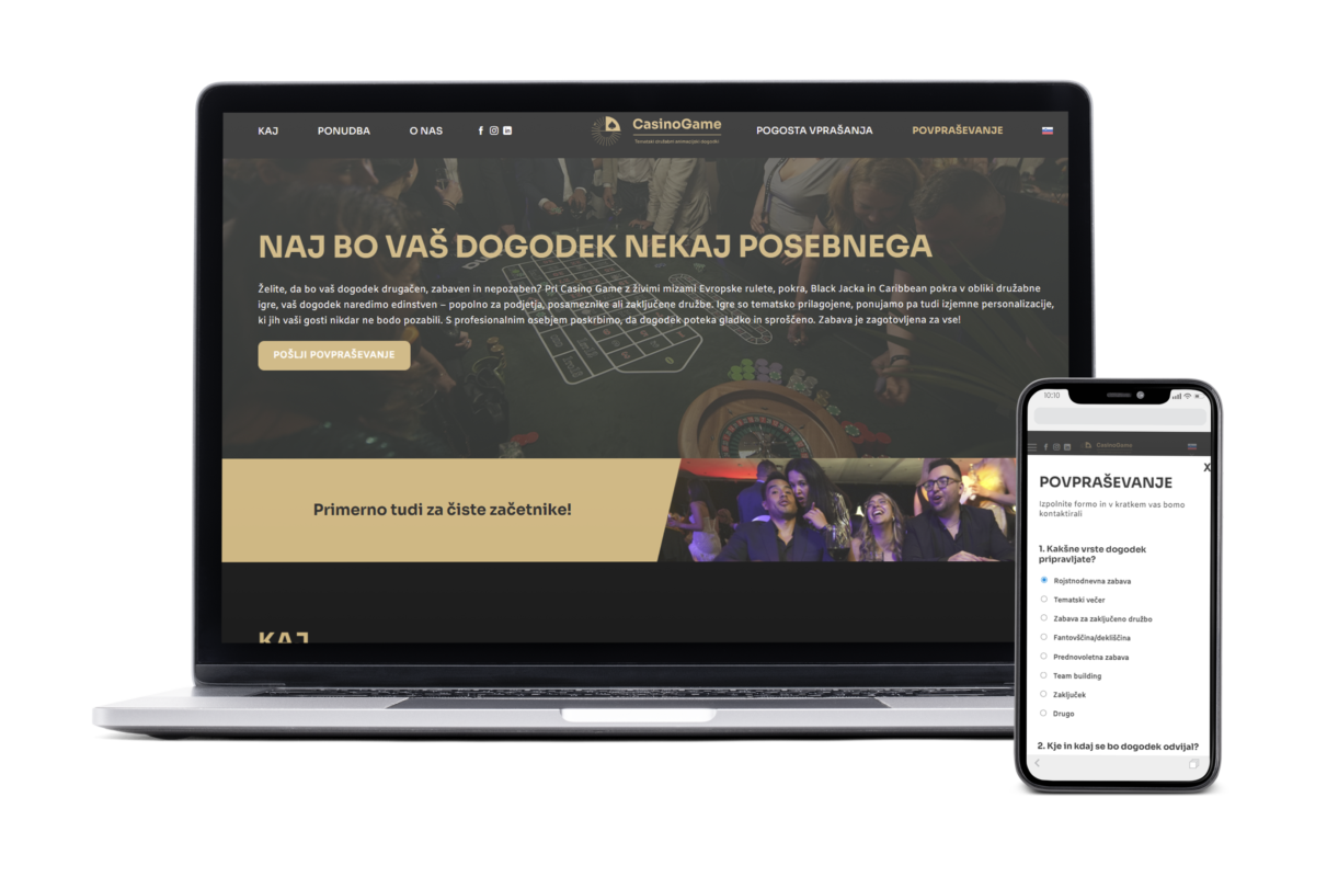 Za CasinoGame smo razvili “All-In” projekt, ki združuje spletni razvoj, vzpostavitev trženjskih kanalov in zahtevno video produkcijo.